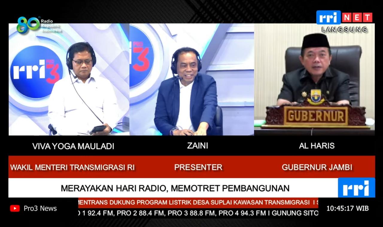 Viva Yoga dalam siaran yang didampingi host utama M. Zaini, mengatakan dirinya pernah berkunjung ke kawasan transmigrasi di provinsi itu. Di sana ada empat kawasan transmigrasi, yakni di Geragai Kabupaten Tanjung Jabung Timur, Kumpeh di Kabupaten Muaro Jambi, Pauh di Kabupaten Sorolangun, dan Bathin III Ulu di Kabupaten Bungo. “Perhatian Bapak Gubernur sangat bagus,” ujarnya.